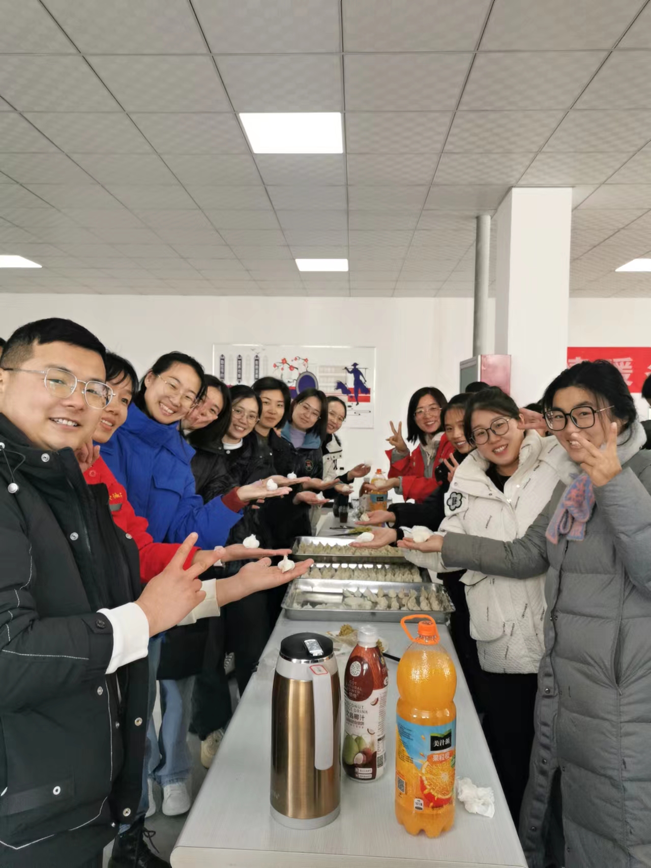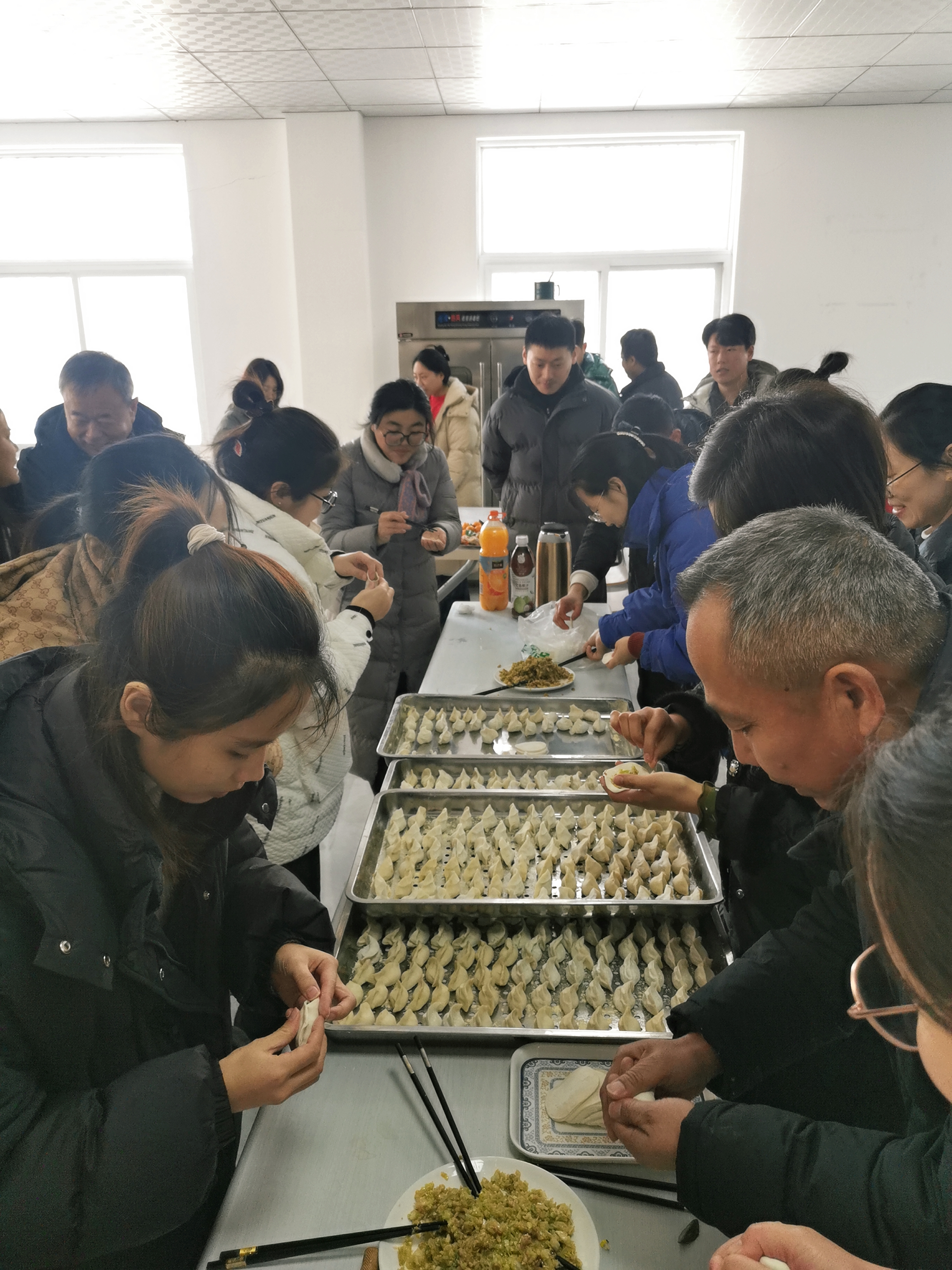 冬至如小年,员工自己动手,饺子包了一盘又一盘,煮熟的饺子香气沁人。现场欢声笑语,其乐融融。热腾腾的饺子暖身暖心。员工品尝着不同味道的饺子,忘记了寒冷,大厅成了幸福的乐园。